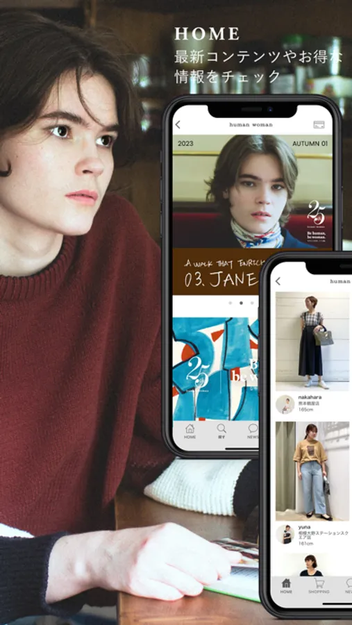 自分らしくスタイリングが楽しめる大人の日常着を提案するhuman woman(ヒューマンウーマン)の公式アプリ。