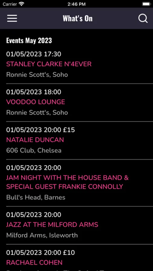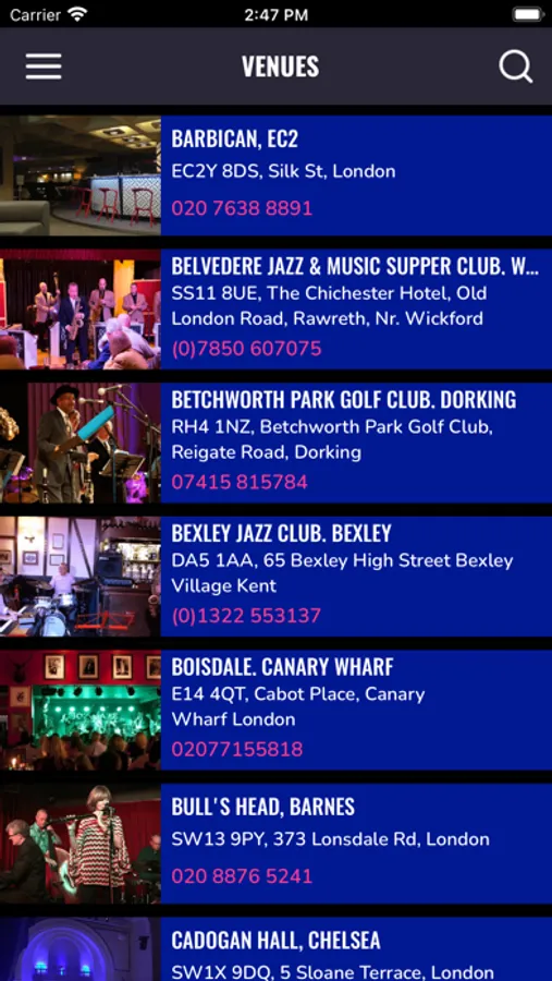 JAZZLONDONLIVE lets users find out and keep up to date with what's happening on London's thriving year-round jazz scene and beyond. Via the warm, vibey interface, users can view gig information quickly and easily by date or by venue, call the venue or click through to their websites to book online, locate them on Google Maps, add gigs to calendars and share with friends via SMS, email and social media.