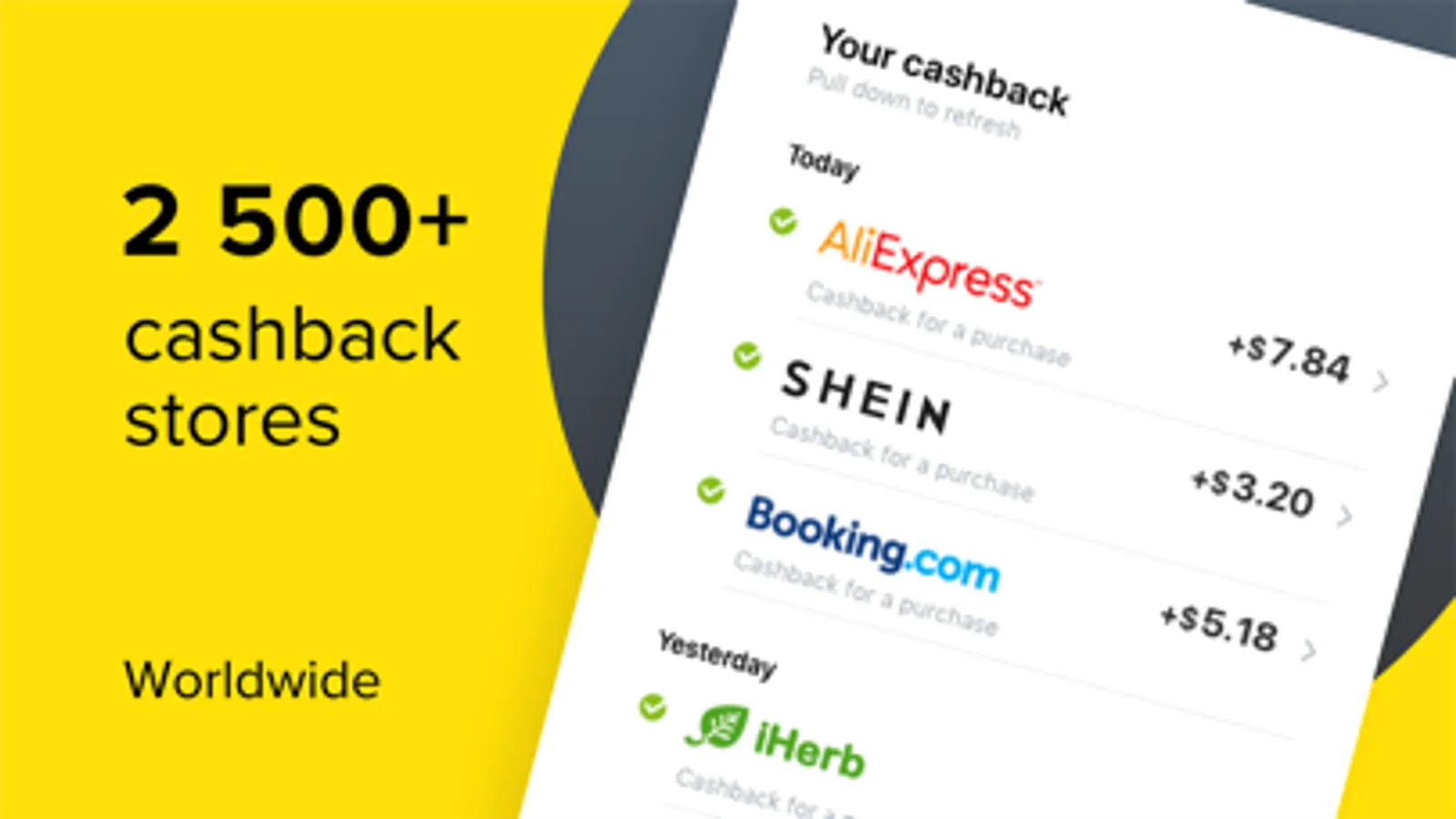 To start saving, install Megabonus app totally free of charge. Continue shopping on AliExpress, Shein, Booking, eBay, Banggood and many other stores and get up to 40% of the cost of the items back to your balance in Megabonus. You can withdraw the cashback after you confirm receiving the item.