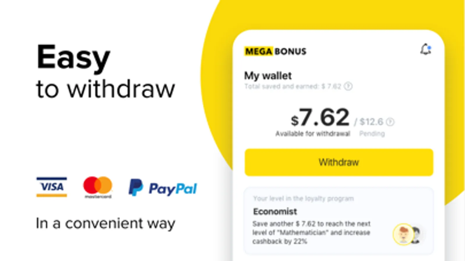 Megabonus is a cashback service allowing to get back some of the money spent on purchases online.