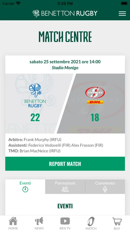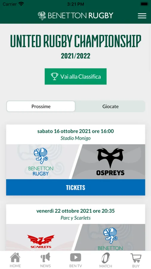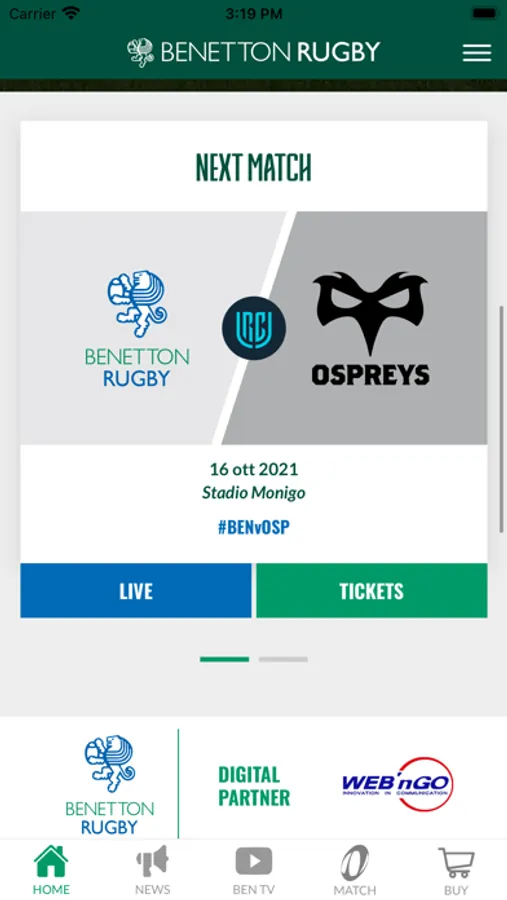 Grazie per aver scelto di usare Benetton Rugby Official App!