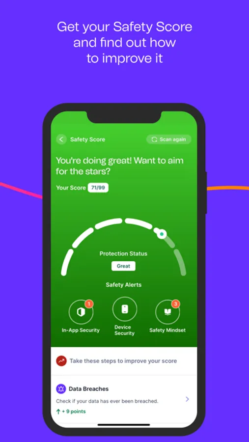 • Safety Score: Find out, at a glance, how exposed you are to digital threats, and get simple tips for improving your online protection.