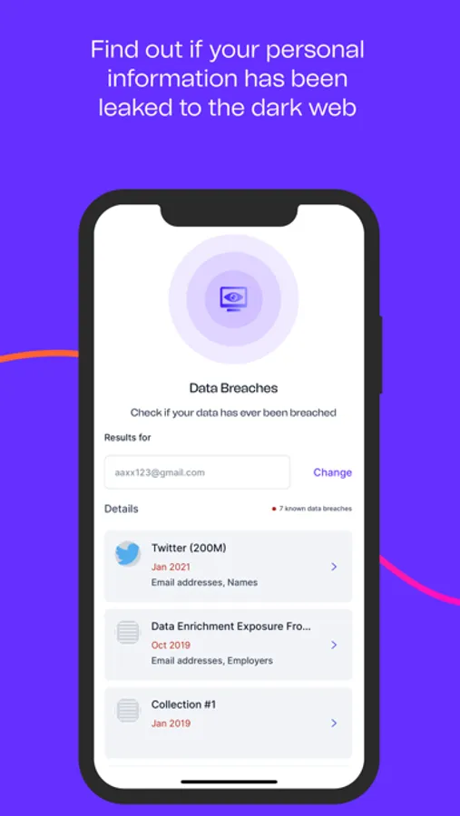 • Breach Detection: Find out if your data’s been breached and identity or passwords compromised.