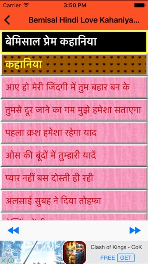 Best feature is that you can select your favorite story, bookmark it or add it to favorite.