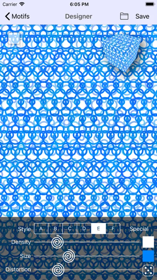EasyPattern comes with numerous Motifs that we will be adding to over time. Each Motif is a starting point where randomization and your parameter choices creates a unique work of art that can scale to any size since it's vector art.