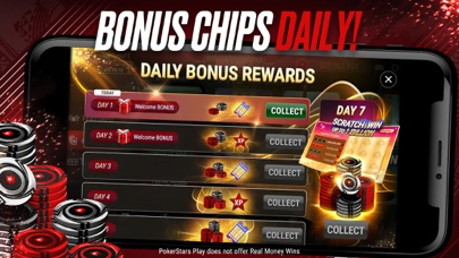 • Daily Poker chips bonuses – get up to 100,000 chips FOR FREE every day!