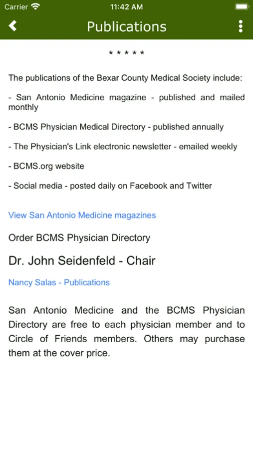 The Bexar County Medical Society (BCMS) app contains contact information for the physician leadership and key staff. It also includes the event calendar and much more.