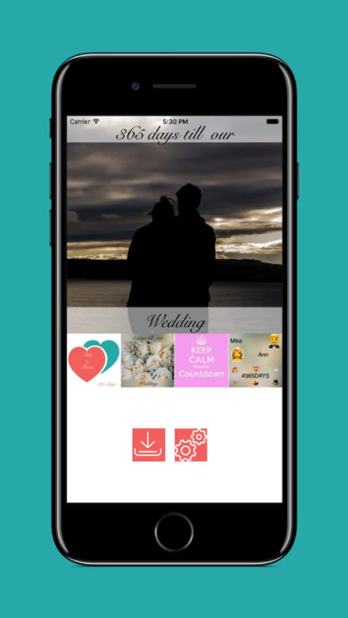 Countdown to your wedding day. Check the notification center to see how many days you have left for the big day. Share this special date with our 4 designs on your social networks.