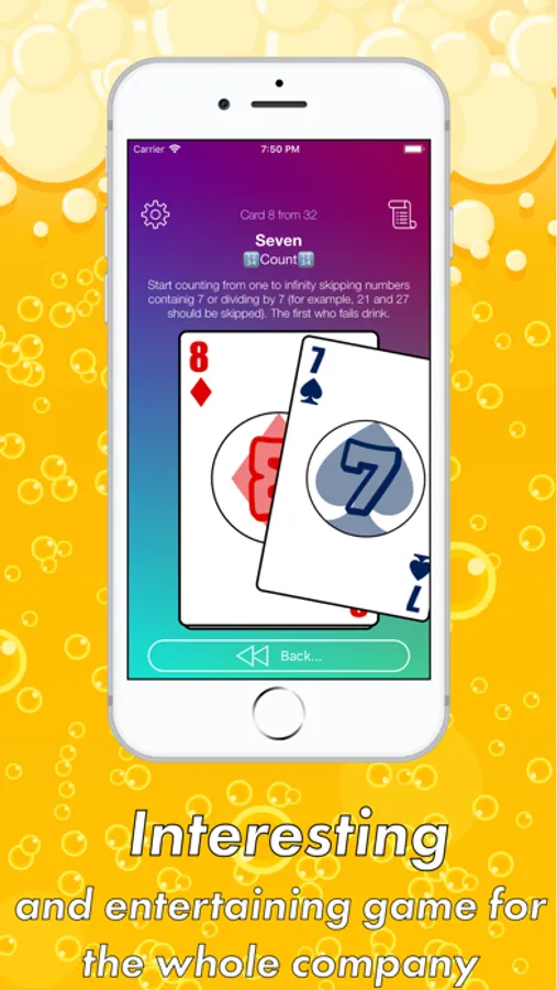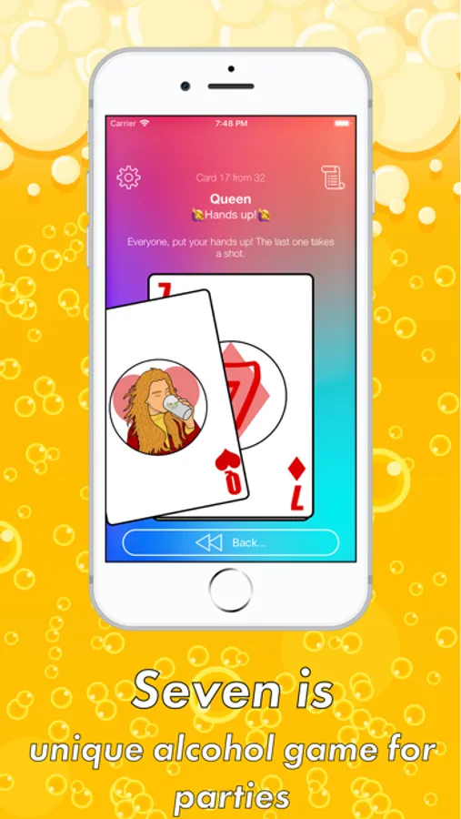 Game "Seven" is unique alcohol fun, thanks to which you can "pimp" any homeparty! If previously you had to bring the whole card deck with you, now the game is always in your pocket!