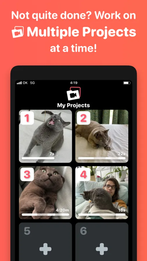 OK Video is unlimited, vine-style video recording with no editing needed: simply hold the screen to record each shot of your video. Easily create a vlog, a stop motion video or just capture whatever’s happening around you. After recording you can directly save it to your camera roll or share it via your favorite app. If you do need a little editing — like removing mistakes or reordering shots — the Timeline Editor is there to help (for a one-time in-app purchase)!