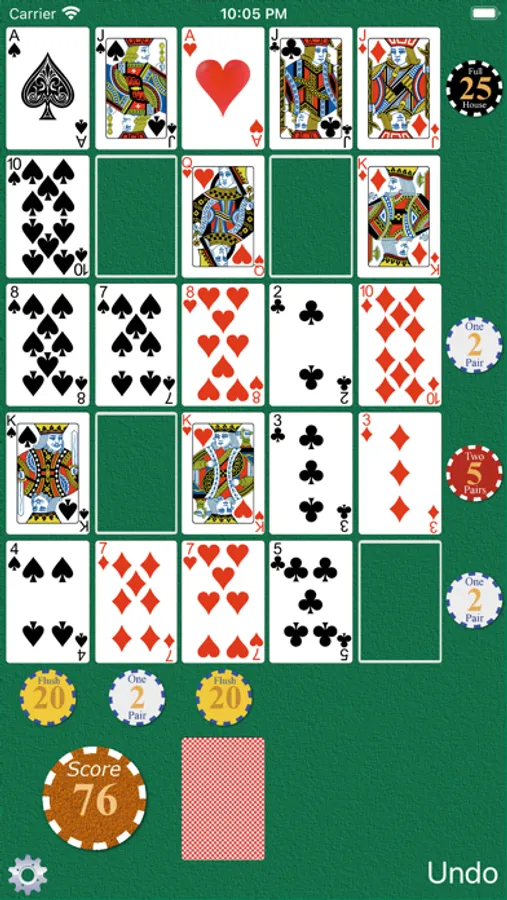 With real playing cards, poker chips and sound effects, we believe this is the most fun Poker Solitaire game on the app store! With the option to play the vintage Milton Bradley hidden card style or the standard play style this app is a real treat.