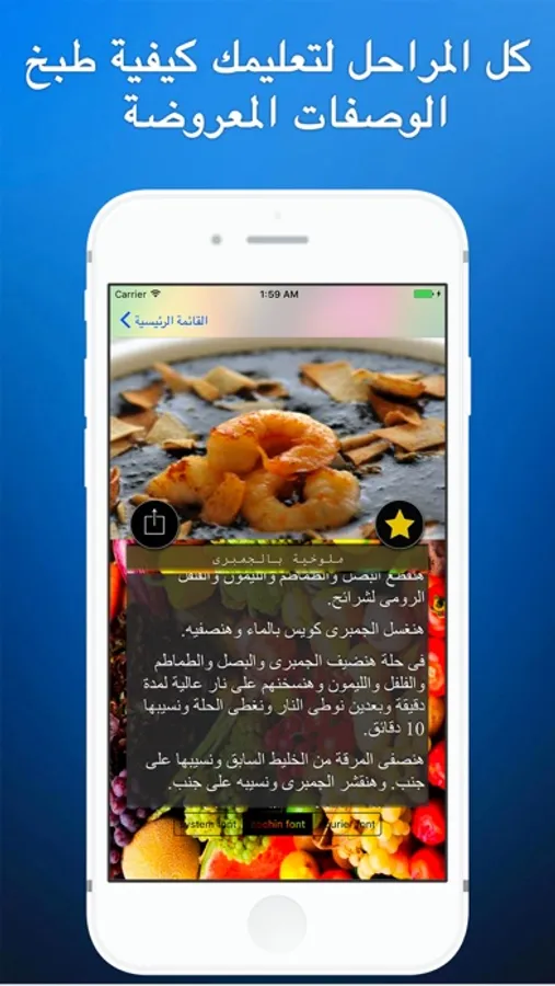 * يوفر عليك تطبيق وصفات طبخ عناء البحث عن الوصفات التى تريدها فهو يحتوى على كل ما تريد و يمكن الوصول الى الوصفات فى أى وقت دون الحاجة للاتصال بالانترنت.