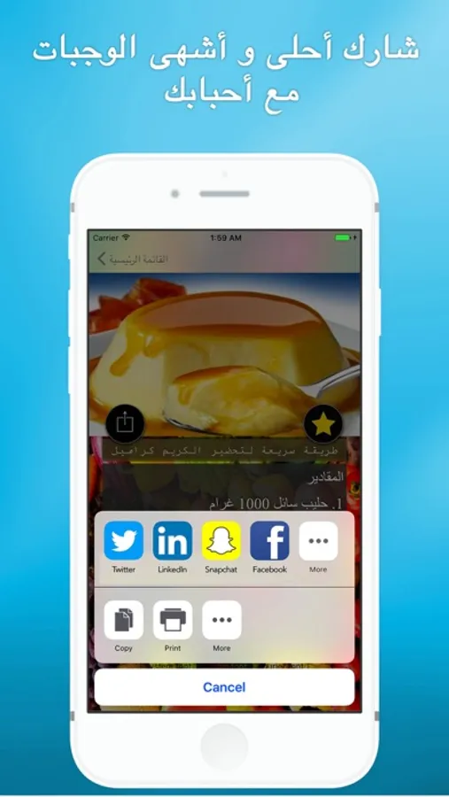 * إمكانية مشاركة الوصفات عبر مواقع التواصل الإجتماعي