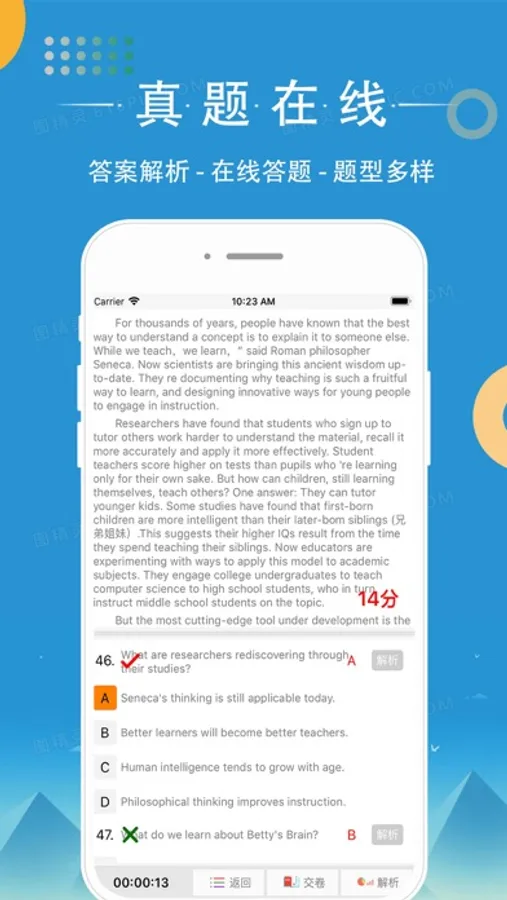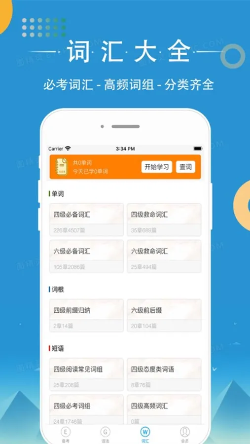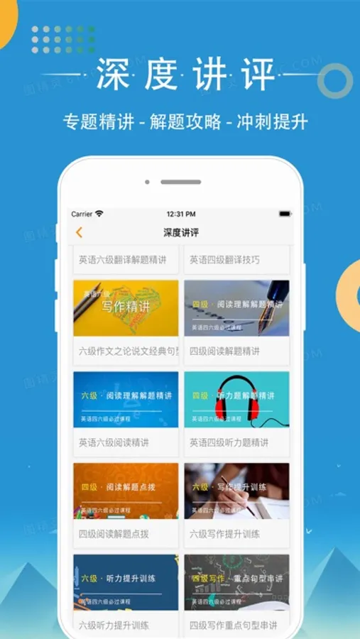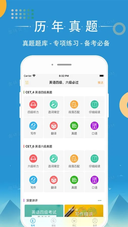 英语过级宝包含大学英语四级、大学英语六级、大学英语考研、托福英语、雅思英语等内容。