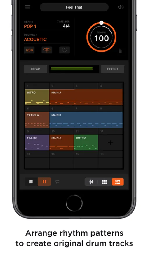 You can connect rhythm patterns to create a complete drum track that's appropriate for your own song, and play it automatically.