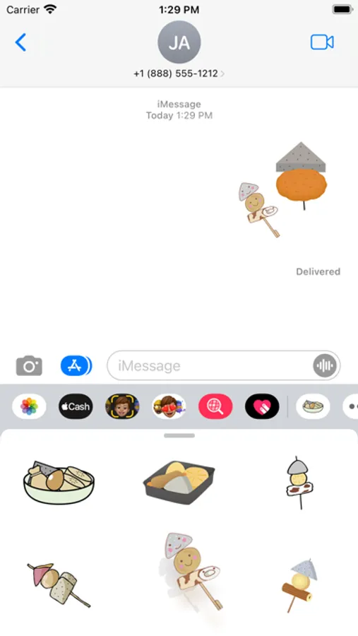 Attached to the message is a cute, oden sticker