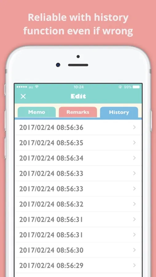 Although it is the "history" tab, contents written in the "memo" tab are accumulated in the history as the name does. (It will be written to the history when you press save button on memo page)
