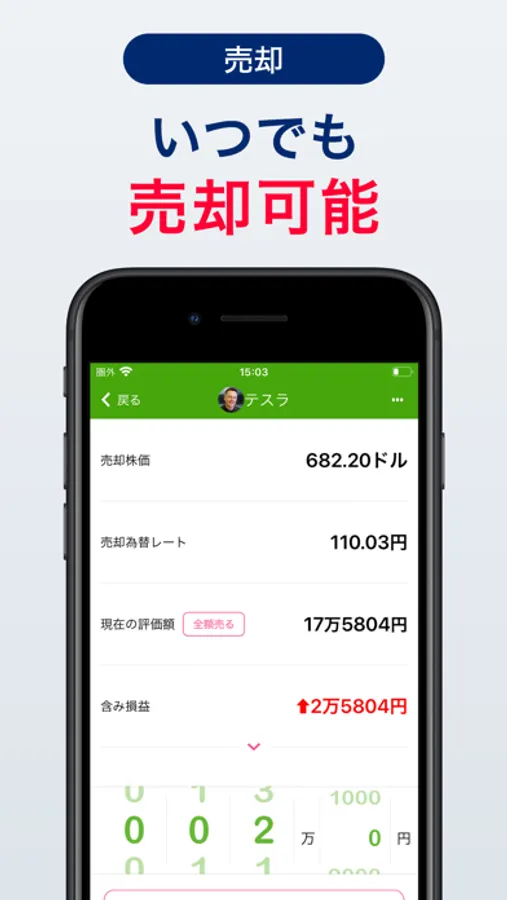 株式の売却もアプリにおまかせ。設定した金額・日付で自動売却します。全て売却したい時だけでなく、投資額の調整や投資先のリバランスにもぜひご活用ください。