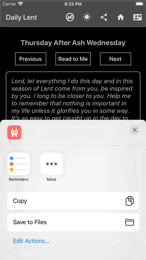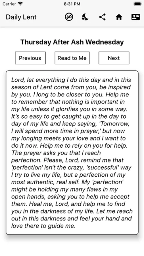 - Text to Speech feature that reads the prayer to you,
