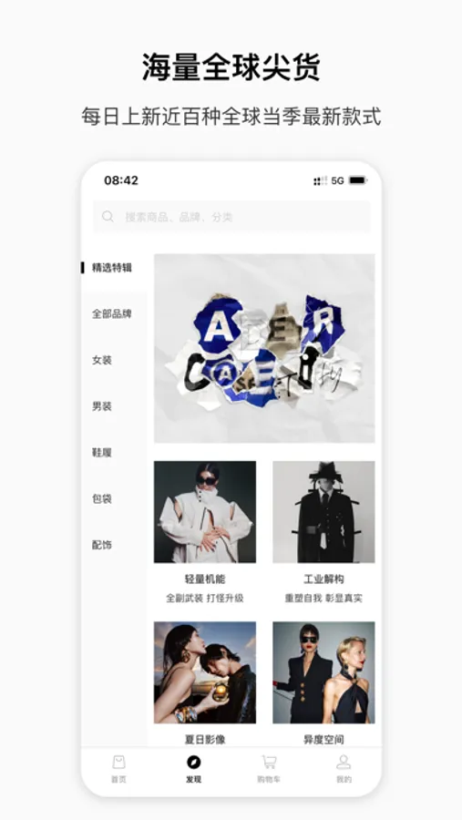 「全球海量单品」:1000+个奢侈品一线大牌、独立设计师品牌、街头潮牌。