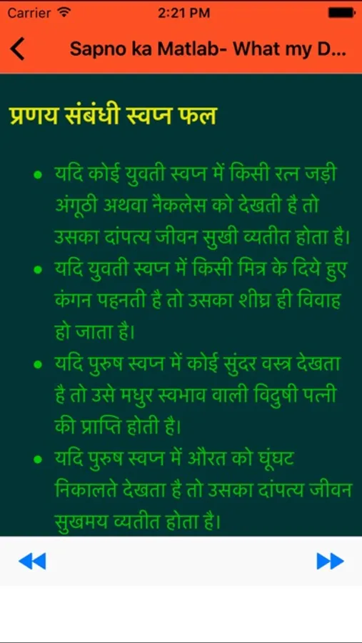 The best feature of this app is that you can select your dream meaning, bookmark it and add it to your favorite. Also this app is offline.