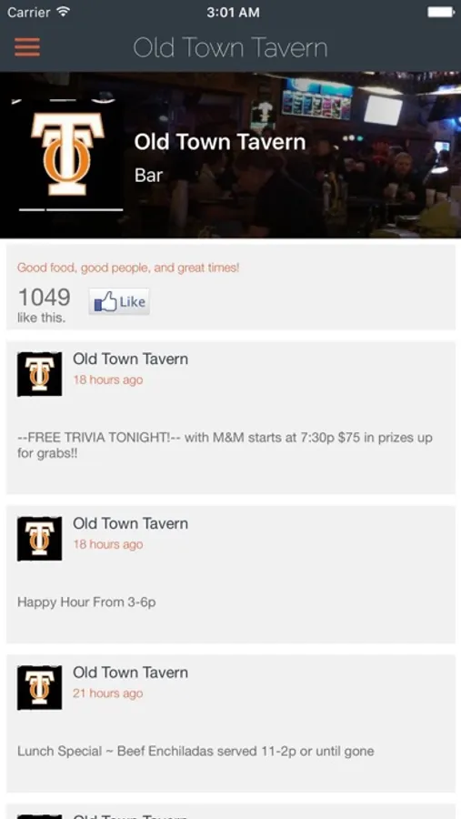 App for Old Town Tavern in Morristown, MN. Download our app to see our menu, daily specials, events, and order food online!