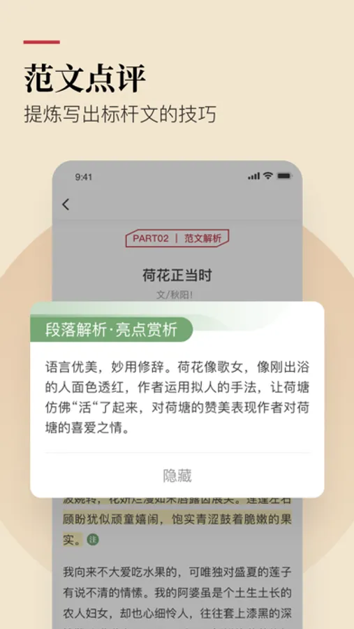 每个素材都自带“适用主题+独家解析+优秀示例”,教你如何写出新意、写出深度。基本上手0难度,写作业,大考小考都能用。