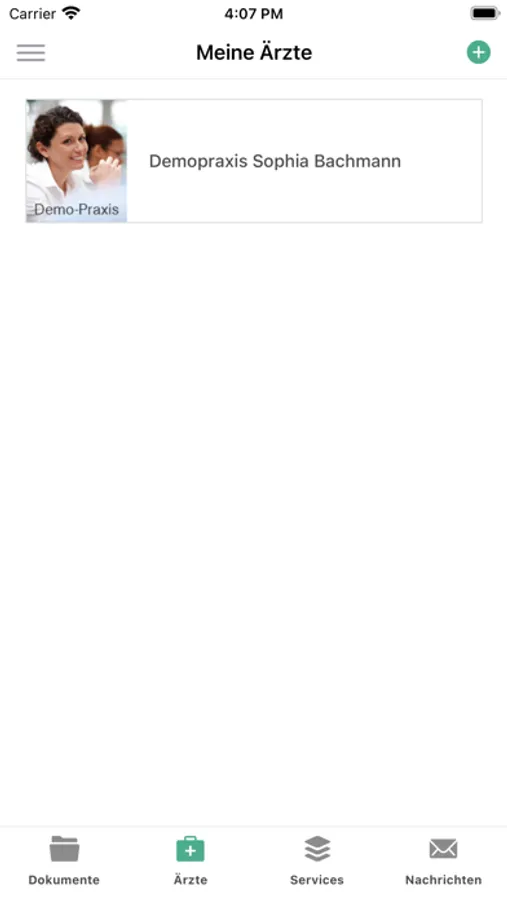 Das Angebot innerhalb der App hängt von den teilnehmenden Ärzten ab. Nicht jeder Arzt bietet jede Funktion an.