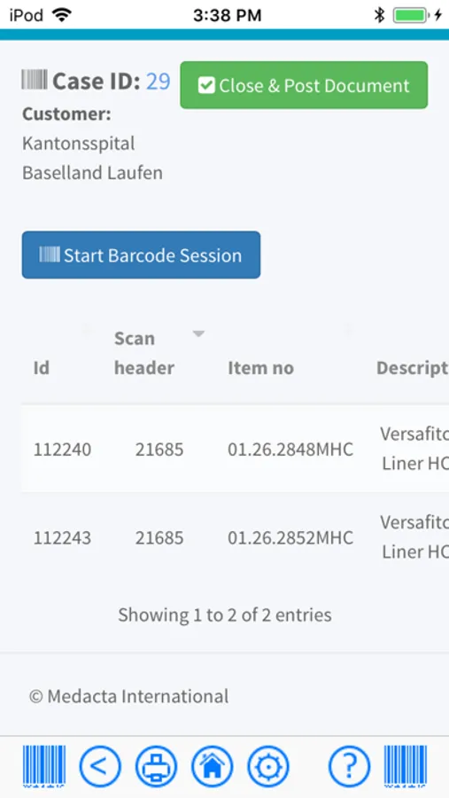 App is providing barcode scanning to service and work order system Medacta myOps.