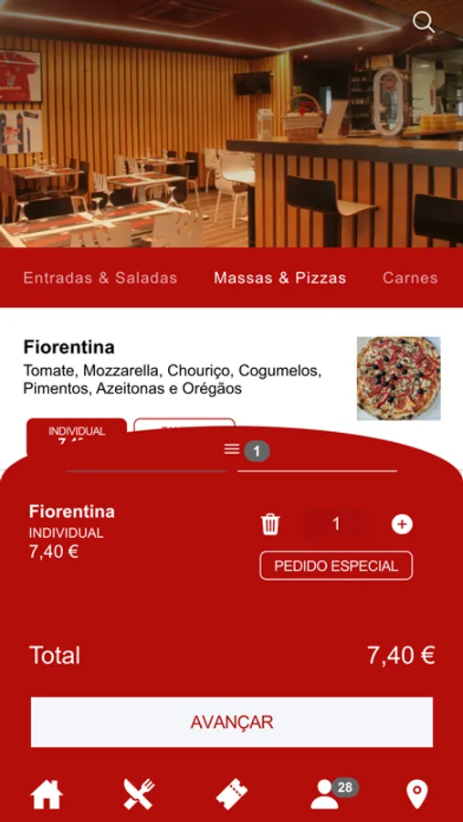 Com a nossa App tem acesso ao nosso menu, e fica a conhecer em primeira mão todas a novidades sobre o nosso restaurante. Alem disso, fica também com acesso ao nosso cartão de cliente que lhe permite trocar pontos por descontos. Por cada € ganha um ponto e quando tiver acumulado 100 pontos recebe um cupão de 5€ para descontar na sua próxima visita.