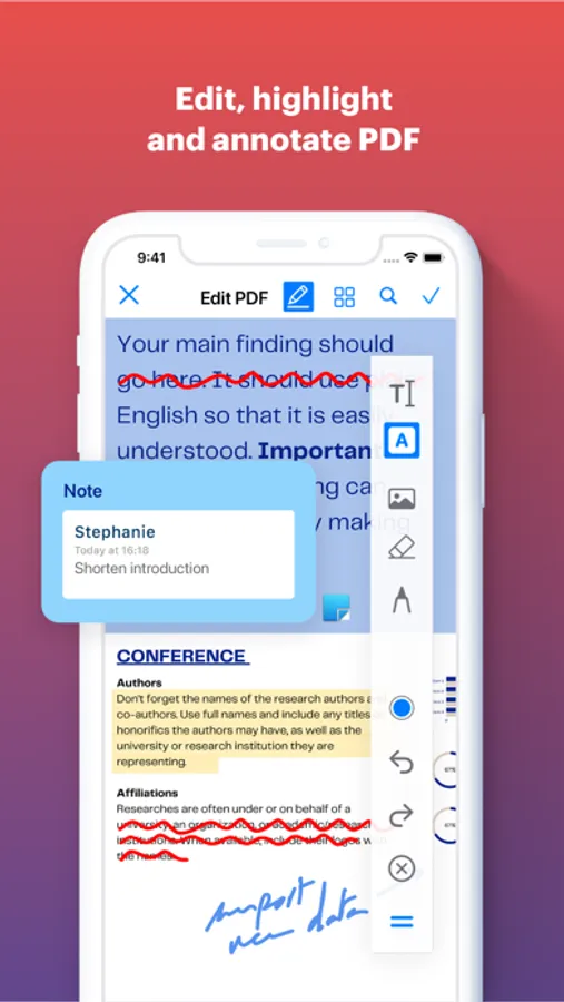 • Annotate PDF: Simply highlight the relevant text in your PDF. Add notes and annotations to PDF document, leave comments, draw or insert images to PDF. Choose your format of annotation.