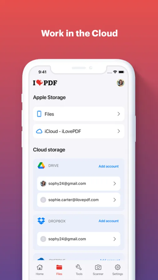 • PDF Reader: View, edit and modify PDF files stored in the Cloud or on your device whenever you