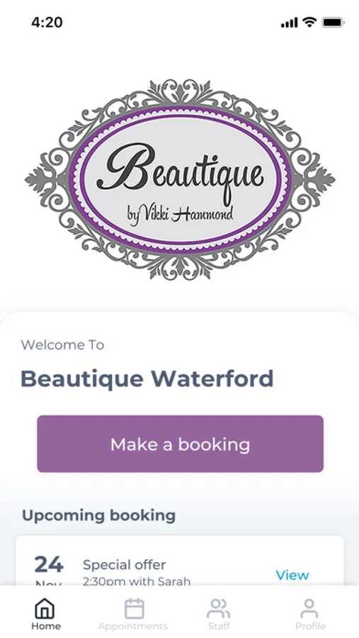 The Beautique Waterford app makes booking your appointments and managing your loyalty points even easier. You're just a few taps away from feeling good and looking great!