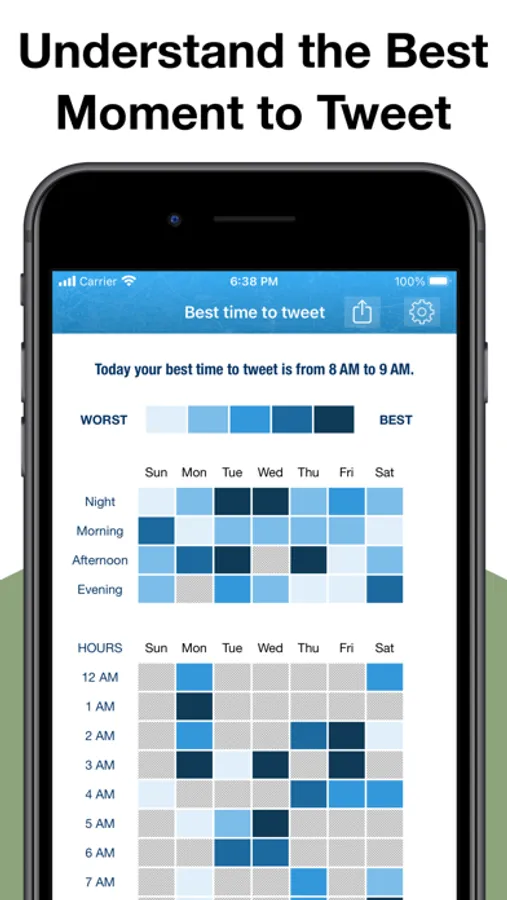 • BEST TIME TO TWEET: understand the best moment to tweet.