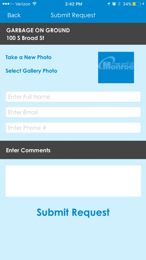 Wish there was a way to report potholes, litter, and damaged street signs? Wish it was as easy as picking up your mobile device and taking a picture? There’s an app for that. The City of Monroe’s new mobile app allows you to report such issues. This app uses GPS to identify your location and gives you a list of quality-of-life conditions to select for reporting. The app also allows you to take a photo and upload it with your service request. After a request is submitted, our city staff will get the issue resolved as soon as possible. The progress of each service request can be tracked in-app so you’ll even know when the problem has been fixed. This app brought to you by the City of Monroe and powered by HiperWeb.
