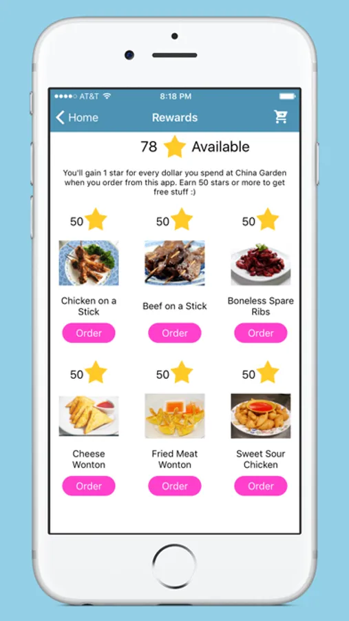 Earn rewards for every dollar spent. Once you earn 100 reward stars, use it to redeem for free food. App valid only at China Garden in Lewes, Delaware USA location.