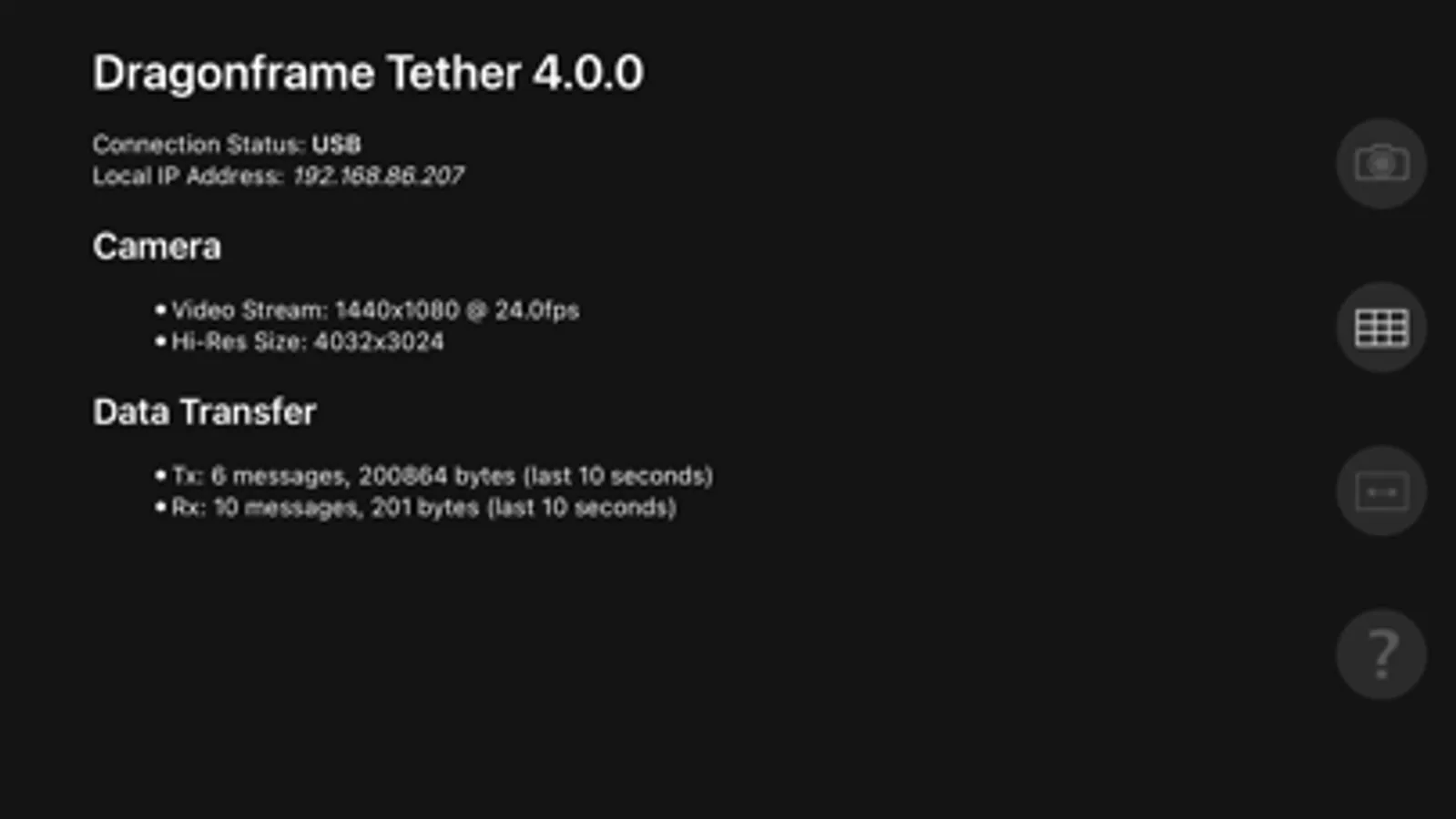 * Dragonframe will show a video preview using the iOS camera.