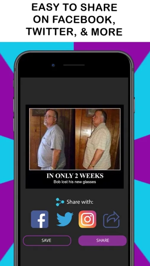 Share all your new memes easily with your family and friends right from the app. Just upload to Facebook or Twitter within seconds - it's super easy!