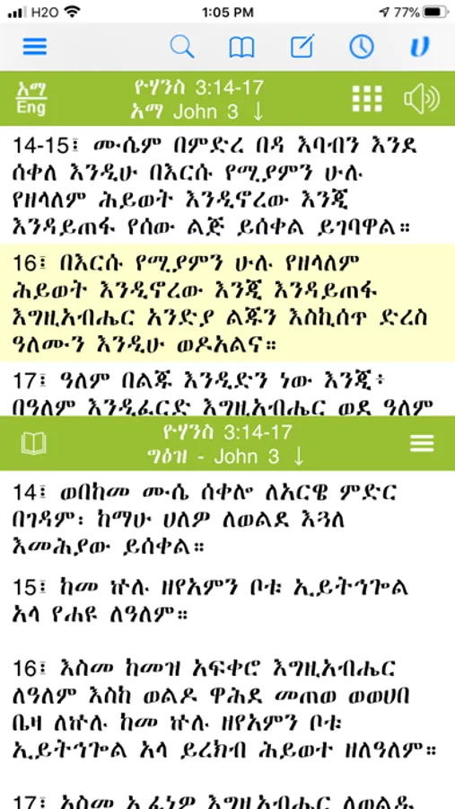 Totally Offline Amharic Audio. Plus Geez, Tigrigna, ASB, KJV and WEB bibles
