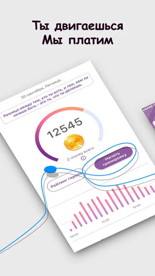 За каждые 3,000 пройденных шагов вы получаете 1 Z-money (нашу монету).
