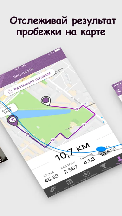 Получай мотивацию и награды за новые личные рекорды.
