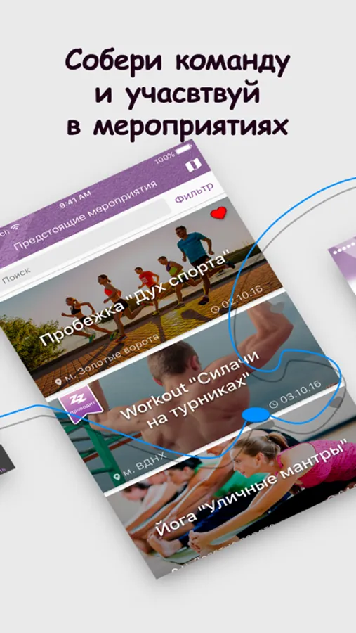 – Отслеживайте спортивные мероприятия в вашем городе и регистрируйтесь в них прямо из приложения