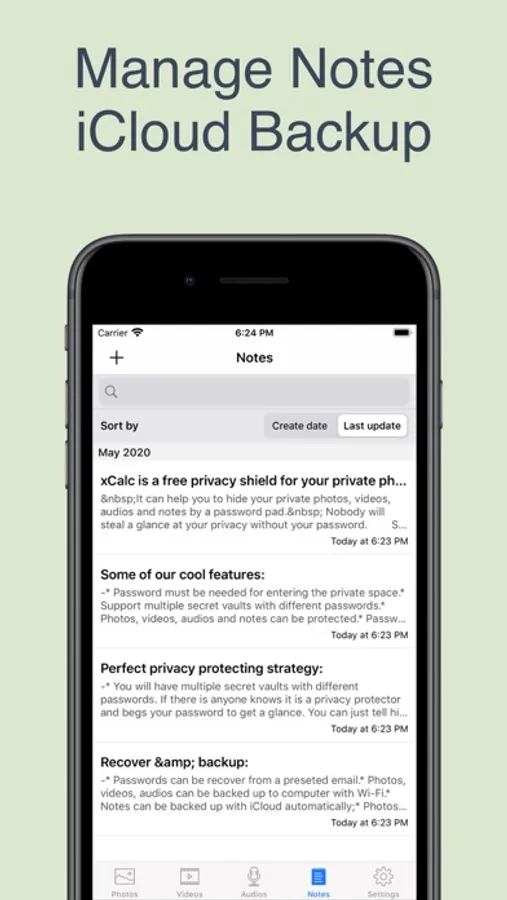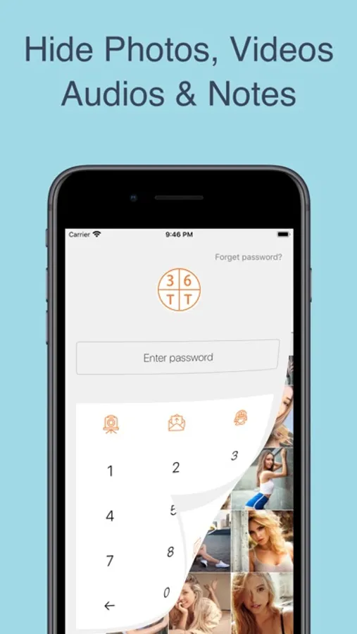 It can help you to hide your private photos, videos, audios and notes by a password pad. Nobody will steal a glance at your privacy without your password.