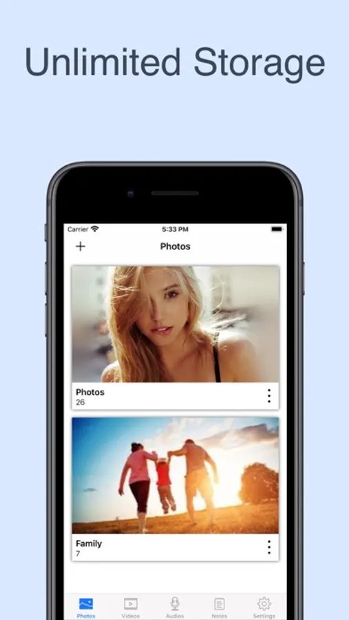 * Your photos, videos, audios and notes will just stay on your iPhone and never be transferred to any server. That ensures your privacy to be 100% safe.