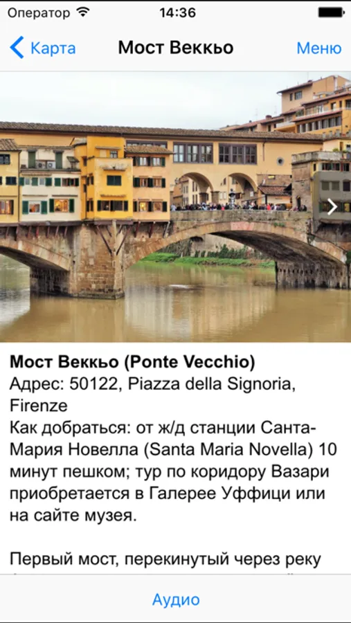 ● АУДИОГИД ПО ФЛОРЕНЦИИ. Рассказы аудиогида озвучены профессиональным диктором. Слушайте рассказы, не отвлекаясь от осмотра достопримечательностей и не теряя время. Не стоит лишний раз портить зрение, читая на ходу текст на небольшом экране.