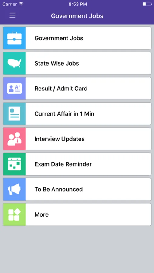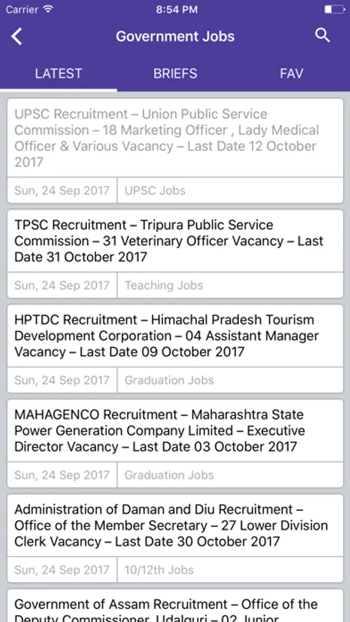 1. Category wise Jobs :- Jobs are updated in more than 16 category like Bank jobs, Railway jobs, SSC recruitment, Engineering jobs, UPSC recruitment and state level civil services recruitment, Defense jobs, Police jobs, Indian Navy, Indian Army, government universities etc which can easily search.