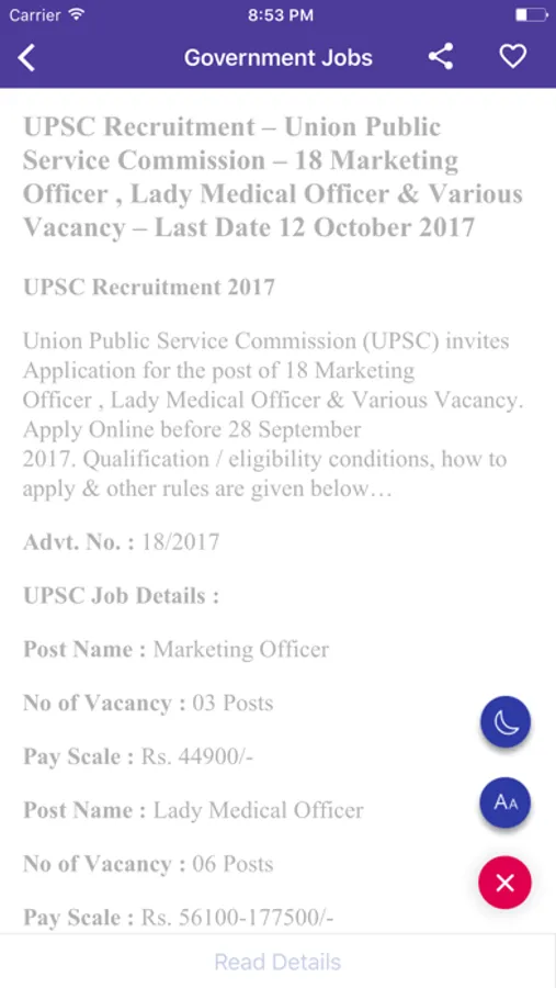 9. Bookmark , share content , Night Mode , Change Font size features are also available.