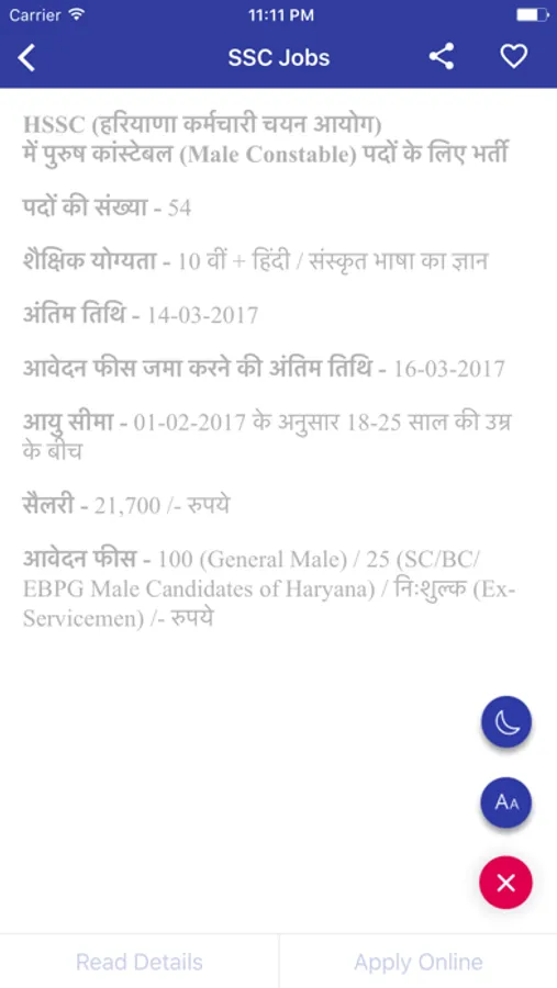 Click on "Read Details" to know more about any jobs information.
