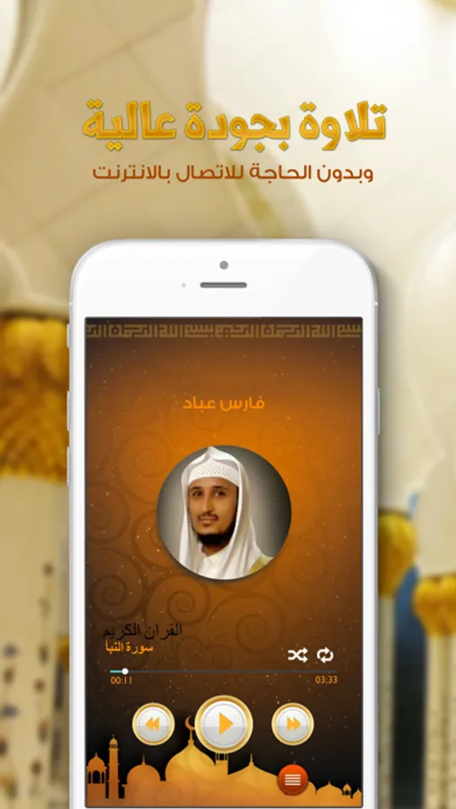يحوي هذا التطبيق على صوت جميل من فارس عباد