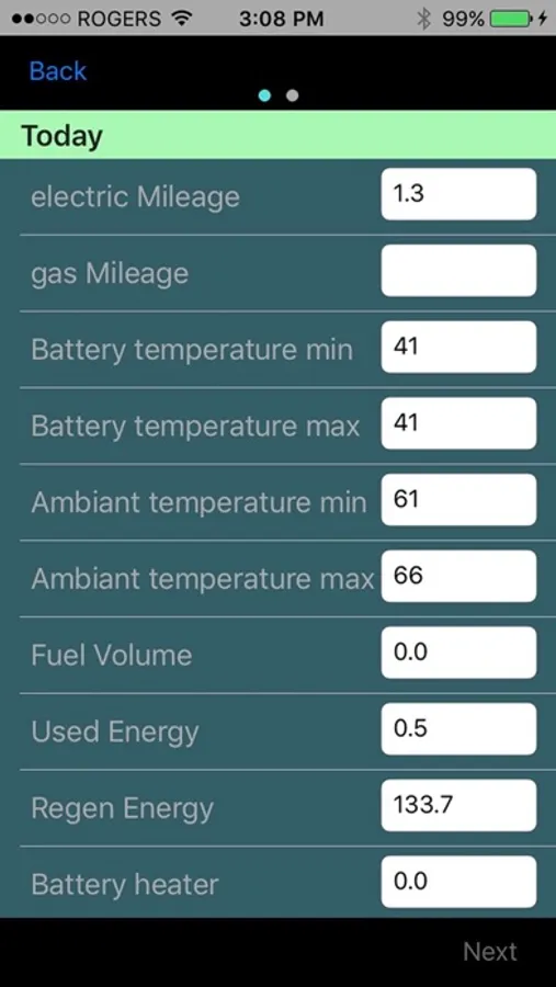 - Statistics: daily and weekly mileage, energy usage, gas efficiency (Volt only), ambient temperature min/max (only for signed-in users)
